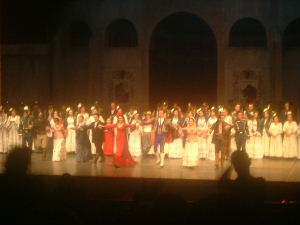 トルコでも、先週の土曜日から日曜日に替わる夜半、夏時間になった。1時間進んで、日本との時差も6時間。夜が、短くなった。逆に、秋の夜長、というだけに、秋冬は夜が長い。長い夜の楽しみは???オペラとか...と言っても、誰も信じないだろう、(私を知っている人は)でもね、でも、トルコに来てから見るようになったの。日本にいたときには、オペラはおいそれとは近付けないものだったけれど、トルコでは、国営のオペラ・バレー団があって、庶民的なお値段で「カルメン」とか、「蝶々夫人」とかが見られるのだ。レベルを云々できる立場に私はいないけれど、見ていて充分に楽しい。舞台装置とか、衣装とかも凝っていて、素敵だ。演劇も、国立とか私立の劇場とかなら、気軽に行ける。オペラや、バレーはイスタンブルだとアタトゥルク文化センター( Atatürk Kültür Merkezi )-通称AKM(アーケーメー)で演じられるので、後ろの席だとそれなりにやはり遠いけれど、劇場はそれ程大きくないので、舞台がとても近い。普段、テレビのドラマとかで見ている役者を、近くで生で見られるのはなかなか新鮮。国立のオペラ座や、劇団の設置も、近代トルコの父、アタトゥルクの命によるものと言う。オペラや、バレーを見つつ、やっぱり、アタトゥルクは偉大だったな、と思う。オペラや演劇には、シーズンがあって10月から5月の半ばくらいまで。夏は、ボドルムとかアスペンドスとかの古代劇場で上演していたりするけれど、イスタンブルのシーズンは、もうすぐ終っちゃう...
