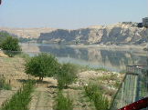 ユーフラテス川 Fιrat Nehriトルコ東部の山間部から、イラクのバスラ湾に流れる全長2780キロの国際河川。トルコ語で、フラトは男の子の名で、隣を流れるチグリス川:ディジレ( Dicle )は女の子の名前。世界最古のメソポタミア文明のお父さんとお母さん。石、ではなくて、川が話せるなら、6000年の歴史をどんな風に語ってくれるのだろう... フラト、ユーフラテスは、確かに大河。 上の3枚の写真のうち、左の2枚は、 Birecik からだけど、対岸まで500メートルくらいはある。 右端は、Zeugma の遺跡のある所。対岸は、見えたり見えなかったり。川というよりは、湖のような感じがする。 トルコ国内を流れるのは、ほぼ3分の1の971キロメートル、既に5つのダムが稼動している。 でも、流域の主産業が農業や牧畜なおかげか、透明度の高いきれいな水だ。