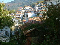 シリンジェ( ∫irince - ∫は本当は髭の生えたS )この町の歴史は古く、エフェスが隆盛を誇った時代には、「山の上のエフェス」として知られていた。その名の表すように、エフェスからは11キロ、セルチュク ( Selçuk )の町からは、8キロほどの所にある。道の両脇、ずっとオリーブ畑の斜面を登ると、山の中にシリンジェ村がある。 今のシリンジェは、ギリシャ風の家屋の並ぶ、静かな佇まいの観光地になっている。石畳の小路では、手編みレースの縁飾りのついたカーテンやテーブルクロスやおばあちゃんが編みながら売っている赤ちゃん用の靴下に、自家製のオリーブオイルやでっかい塊のオリーブ石鹸なんて物が売られている。 近くの山で取れた野イチゴ、エーゲ海側では一般的でも、他の所ではあまり見られない珍しい野菜なんて物もある。 是非、試飲したいのは、果物のワイン。 メロンとか、オレンジとか、木苺、 あまり目にしない珍しいワインがある。 お昼にはぜひとも、ギョズレメ( gözleme )を。クレープのような感じだけれど、もう少し生地がしっかりしている。具は、ナスとかほうれん草とか、チーズとかひき肉とか、幾つかを組み合わせても良い。私は、ほうれん草とチーズの組み合わせと、ナスのペーストが好き。石竈で焼いた、焼きたては本当においしい!右端は、シンプルな野菜の炒め煮なのだけど、Arapsaç (「アラビア人の髪」という意味 )という野菜で、不思議な風味。季節のものなのでいつでもあるわけではないらしいけれど、これがなくてもきっと他の季節の野菜があるのだと思う。