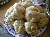 マントゥ( Mantι )日本に来て、饅頭はまんじゅうになった。これは、この間作った肉まん。豚まんのつもりで、でも、豚肉はすごく高いから、牛ひき肉にラードのつもりで羊の尻尾油を少し足して、しいたけとかキャベツとかねぎとかの野菜のみじん切りを入れて作った。皮は、イーストをいれて、醗酵させた。ちょっとちがうけど、それなりに肉まんぽい味だった。これは、モンゴル人の友達が作ってくれた、マントウ。ウイグル人の友達も同じようなのを作ってくれた。中央アジアのマントウ。皮は、小麦粉と塩と水をこねたものなので、餃子の皮に似ている。中身は、肉500gに玉ねぎ半個という感じだそうで、肉!がメイン。塩味と、肉の脂分が足りなければ、油を足す。でもって、赤ちゃんのこぶしと大人のこぶしの間くらいの大きさに包んで、蒸す。蒸したてを、何もかけずにそのまま食べる。これまた、おいしい。これは、トルコ人の友達が作ってくれたマントゥ。彼女も、皮はやっぱり小麦粉と塩と水を混ぜてこねて少し寝かせて作っていた。具は、やはり、ひき肉と玉ねぎ少々。材料は一緒だけれど、中央アジアのマントウとの違いは大きさ。ラビオリくらいの大きさ、というか、親指の頭くらいの大きさに包む。(手伝ったけど、自分でも稀に作るけど、気が狂いそう!)それを、蒸すというよりは、ゆでる。食べる時には、にんにく入りのヨーグルトソースと唐辛子とトマトのペーストを油で溶かしたソースをかける。どこが最初かわからないけれど、日本のマントウは、皮もふっくらしているし、具の野菜も多い。一つの大きさも結構大きい。中央アジアのマントウは、ショウロンポウに似た感じ。トルコのマントウは、強いて言えば、水餃子に似ている。時々、二杯酢と辛子で食べるけれど、懐かしい味。マントウは、ユーラシア大陸を西に進むにつれて、小さくなったのかな...