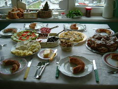 トルコ料理の中で最初の地位をケバブと争ったのは、朝ご飯!トルコ語でカフヴァルトというけれど、語源はカフェオレからとか、コーヒーの後、とか諸説あるようではっきりしない。どちらにしろ、トルコで一番好きな食事は?と聞かれたら(料理ではなくて、食事。)ためらいなく、朝ご飯!と言うと思う。普段は、トルコ風朝ご飯を食べないけれど、お客様がいるときは別。日本からのお客様でも、トルコ人でも、人がいればトルコ風朝ご飯を食べられるチャンス!普段は簡単にすませても、お客様がいる時の朝ご飯はフルコース。まず、朝食に欠かせないのは、焼きたてのEKMEK(パン)。トルコの主食はパンなので、パン屋(フルン)は本当にたくさんある。我が家の近くにも歩いて3分くらいの所にあって、朝6時前から焼きたてのパンを買うことができる。ちょっと太らせたフランスパンのようなパンは、外側はパリっ、中はふわふわしているけれども噛むともちっとしていておいしい。細長いのがノルマル(普通の)、ちょっと黒っぽいのが胚芽入りでケペックリ、丸いパンがくっついて花の形のようなのがチチェック、近くのパン屋には朝は大抵この3種類が並ぶ。トルコ人の友人達に朝食に欠かせないものは?とアンケートをとったら、この3つを9割以上の人が挙げた。 まず、オリーブ。日本にいた頃はオリーブは緑だと思っていたけれど、トルコに来たらむしろ黒い方がポピュラーだった。塩漬けで、産地とかによっても味が微妙に違う。次にチーズ。ベヤズペイニルという白チーズ、プロセスチーズに一番近いと思うタ-ゼカシャ-ル、ちょっと塩がきついけれど私は大好きなエスキカシャール...そしてジャム。写真は、今が旬オレンジの皮のジャムだけれど、果物の宝庫トルコではジャムの種類もふんだん。杏とか桃、イチゴや花梨、ブラックベリーや木苺のジャムは素直においしいし、若い無花果を丁子風味でジャムにしたものとか、薔薇の花びらのジャムとかも意外とおいしい。私的に話の種だな程度の味の、ナスやすいかのジャムなんてものもある。この3つ以外にももちろん、トマトやきゅうりといった野菜や、ゆで卵かメネメンのような卵料理かスジュク(トルコ風サラミ)やハムといったたんぱく質も並ぶ。そして、我が家のカフヴァルトに欠かせないのは、KAYMAK(クロケットクリーム)とBAL(蜂蜜)。焼きたてのパンにこの二つをつけて食べるともう、夢のようにおいしい~。朝起きたばかりでも、夢の世界に飛んでいけてしまう。(カロリーを考えると現実の世界に戻ってこられるけれど...)ホテルについている朝ご飯では見かけたことがないけれど、朝ご飯を出している街の店には Bal ve Kaymak というメニューをおいている所がある。お試しあれ~。