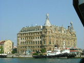 イスタンブルはアジアとヨーロッパにまたがる街。アジアとヨーロッパの間には海がある。ヨーロッパからきた列車は、ヨーロッパ側の終着駅シルケジ(Sirkeci)が終点。アジアからきた列車はアジア側の終着駅ハイダルパシャ(Haydarpa∫aー∫は髭のついたs)が終点。今、間にトンネルが掘られていて、ヨーロッパとアジアは鉄道でも繋がる予定。。。繋がってしまったら、用無しになってしまう2つの終着駅。何か別の用途で使うよう計画中というけれど、駅である間に是非行っておきたい。特に、アジア側のハイダルパシャ駅。 ヨーロッパ側から行くときには、カラキョイ(karaköy)から船で行くのが便利。 天気がよければ、船の外側のデッキに立ち、近付いてくる堂々たる建物の駅を眺めたい。 船着場もオスマン時代風の可愛らしい建物で、表示はアラビア文字で書いてある。 駅舎の中も、外観に劣らず美しい。中も外も微妙に古くなっているのも歴史を感じさせてくれる...発着便を知らせる電光掲示板がなければ、駅とわからないかも...