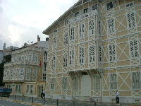 私にとって、幻の博物館だった、サドベルクハヌム博物館( Sadberk Hanιm Müzesi )昔何かのガイドブックで見て以来、ずっと行ってみたかったのだけれど、どこにあるのかよくわからなくて、行けないでいた。先日、ボスポラス海峡沿いを散歩していて見つけた!妙に、小さな看板に、なんとなく覚えていた名前が書いてあってびっくりした。場所は、ボスポラス海峡を遡って、黒海に程近い街サルエリ( Sarιyer )の街中を少し外れた海岸沿い。1980年10月14日開館というから、決して古くはないけれど、私営の博物館らしい落ち着いた隠れ家的な雰囲気がある。19世紀に建てられた家を改装した本館と、考古学のコレクションを展示するために改造増築された建物の二棟から成っていて、どちらもなかなか見ごたえがある。 これは考古学の方にある、燭台。 青銅器と 土器。 私の燭台コレクションに入れさせていただいた。本館の方は、トルコの民俗博物館的な感じ。キュタヒャの陶器とか、オスマン時代の書籍とか、オヤ(刺繍やレース等の手芸品)のコレクションもあるし、19世紀の服装とか生活様式を模した部屋とかもある。 展示されている建物の雰囲気に合っていて、オスマン時代にタイムスリップしたような気分になる。一つ一つの展示品が大事に展示されていて、(トルコでは割と珍しい)和める博物館だと思う。