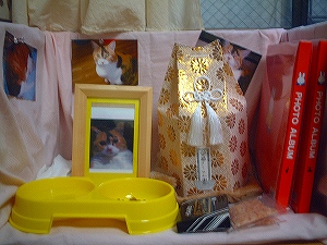 皆様暖かいお言葉をありがとうございました昨日お葬式をすませましたさくらの土曜からの記録を今作っています書き終わりましたらUPするつもりです今日からまた日常に戻りました仕事もバイトも行ってきましたたまにウルウルする時もあったけれどいつまでもメソメソしていられないしボーッとする時間が多いながらも一日終了明日から地元のお祭りです毎年神輿を担いでいるのですが今年は喪中だからどうしようかとダーリンと散々相談した結果担ぐことに決めましたでもぎんちゃんが心配なので夜は家にいてあげたい(昼間はいつも好きな場所に引きこもっているので)昨日お寺の方にもいわれたのですが1匹亡くなった場合残された子は「死」ということがわからないので自分のことが嫌いになっていなくなったのではないかと不安になり 悲しくなるそうですそしてそれがストレスになりそのまま後を追ってしまうケースも少なくないと・・・なのでできるだけぎんのそばにいてあげたいのです。というわけで今年はフルに担がず土日の昼間だけ担ごうと思います。明日はちょっとだけ顔をだす程度にしようかな無理せずのんびりお祭りを楽しんできます!