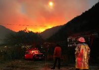 十二日午後十時半現在、約三十ヘクタールを焼いて延焼を続けています。