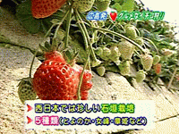 今の季節には、旬の果物5種類(女房、章姫、とよのか、紅ほっぺ、房の香)、西日本では珍しい石垣栽培、水耕、高設の3タイプの栽培方法のいちご狩りが楽しめます。