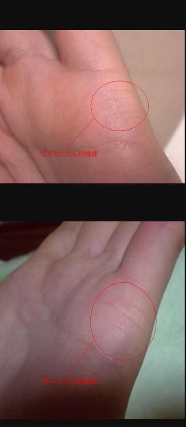 ■□□================================================□■ 手相講義☆実相偏・・・結婚線☆手相写真で確認しましょう 6 114□===================================================○ 格子状になる結婚線まだ心から結婚したいと願う異性に出会っていないか、結婚をそれほど切実に願っていない状態を示しています。どこか夢見がちなロマンチストの人と言えるかもしれません。また、何本かの結婚線になって現れている場合や格子状の結婚線を持つ場合、恋多き人と言えるでしょう。結婚が近づいてくれば、やがて格子は消えてゆきます。占いブログ次回は、結婚線から何がわかる・・!?1、結婚線の先端、上側に短い線が平行する相115です。ひとつづつ見てゆきましょう。お楽しみに!!