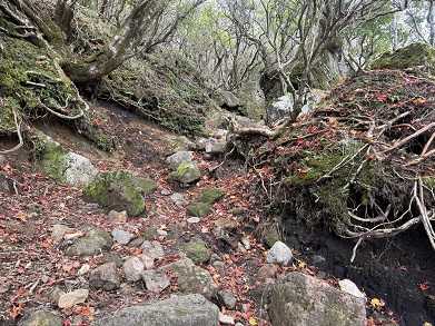 3年前に登ったコースですが、その時は災害直後で道が荒れていました