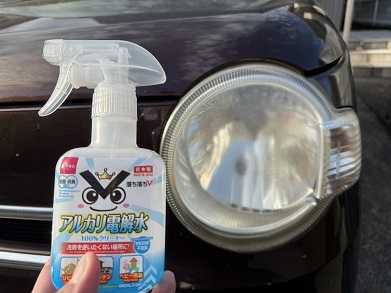 軽自動車のヘッドライトの汚れが気になっていたのですが、百均で買った電解水が綺麗にするとの事びっくり