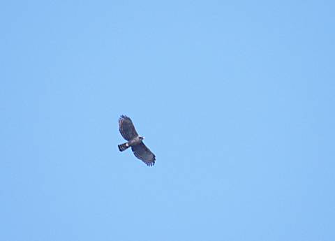 数日前の在庫、このポイントでは初めての猛禽です。オオタカ?ハイタカ?最近ようわからんようになってきました。初めてあったこの個体、ハイタカ成鳥だと思うんですが???根拠は、体の下面の横縞に褐色みがあって顔の黒い部分が薄く狭いからです。大きさは、単独で飛んでるのでよく解りません。猛禽は、シギチよりわかりやすいと思ってましたが、難しい。