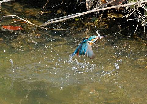 一昨日に味をしめて、今日もカワセミに行ってきました。ところが、一昨日のポイントはなんと工事中となってて水も濁りだめそう、、、あきらめて、ちょこっと上流へ自転車で移動。これがラッキーでした。ここでは、早くもペアリングが始まってるのか雄雌のペアが50センチ程の間隔で留まってました。一昨年も、この近くで巣作りしてましたが人工の堤防で穴が掘れる場所が水面近くにしかなく、梅雨時に水没してしまいました。今年は、どこかいい場所を見つけてくれるといいのですが。これは、わかりにくいですがダイブして魚掴んで上がる寸前です。この下の物は、空振りの飛び出し。 今年は、猛禽に続きカワセミも楽しみになってきました。