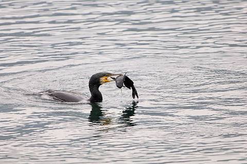 天気予報、あまり良くなかったけど行ってきました。到着したところ、すでに本命は餌取一度してしまったそうで昼に期待しましたが夕方まで現れず、空振りでした。今日の成果は目の前で、カワウが大きなナマズを捕まえて飲み込むのに四苦八苦。他は、ジョウビタキ雌カモさんいろいろかな。