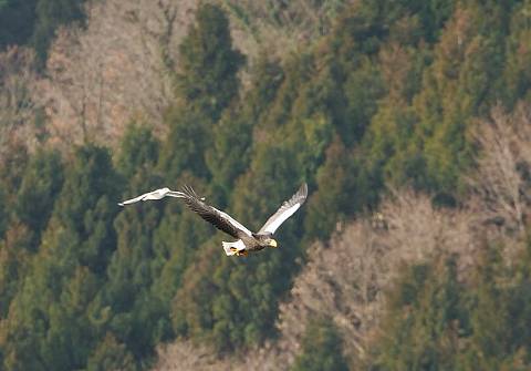 日帰りですが、今年初のオオワシに行って来ました。到着して、1時間もしないうちに登場。魚ゲットの瞬間撮れませんでしたが、カモメに追われてきました。 結構でかい魚を捕ってるようです。 その後、木に留まってお食事。 今日はこのほかに、ハジロカイツブリ、ヨシガモ、ミコアイサ、カワアイサ、オオバン、オオバンのアルビノ個体、カンムリカイツブリ、カイツブリ、ホシハジロ、ヒドリガモ、ヒドリガモのハーフほか結構多くの鳥に出会えました。明日も、もう一度出かける予定です。