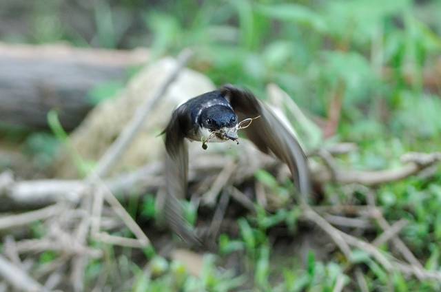 今日も懲りずにアカショウビン目指して出かけました。早朝、降雨時出ないとなかなか出てこないようで今日は到着が遅かったせいか鳴き声も聞こえませんでした。梅雨入り前のとても良い天気ですが、アカショウビンには不向きな天気だったようです。道中の橋の下でイワツバメが営巣中。一生懸命巣材を運んでいます。ツバメ類の飛翔は速すぎてなかなかうまく撮れません。本命さん、何とか会いたいですね。