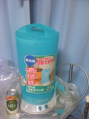 たまには長期旅行もしたいが アパートに置いてる花の水やりが心配で・・・ という方必見! そして 私の様に小型物件のみ所有で シルバー人材さんに 月数千円も払って水やりを委託出来ない そんな方も必見! 先日ヤフオクにて5000円で落札した 自動水やり器が到着しました! こんな物があるんですね~~(キリンムリ―はサイズ比較用) ん? なんとなく 池袋フェスタで青Tシャツを着てた ヒロシさん に似てるような・・・・。笑 ちなみにスペックですが 9Lタンクを備え 仮に 1日200ml注水なら45日世話要らずです! コンセント要らずで単1電池4本で駆動です。 さてこのヒロシ様(いいのだろうか?) (ヒロシさん、怒ってないかな。。汗) 最近の氷点下でも凍結しないように 断熱シートでがっちりくるんであげます! そう! 決して寒さでフガフガしないように! (*^_^*) 明日・明後日あたりで設置してきます!