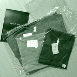 そして服もさっそく届く。(27日注文)あれ?セーターの縫い目に、ちょっと不具合が何点か・・・。見過ごして着られるような感じでもないので、ちょっとショップに問合せしてみよう・・・。このセーター。長袖のカットソーは、どっちも良い感じ! 特に右側の商品は、すごく伸びて、しなやかで、分厚くないのにあったかいかんじ〜