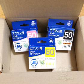 昨日 注文したエプソンプリンター用のリサイクルインクカートリッジ。本当に今日届いた。完全にアスクル代わり、成立だ(笑)ほんとにありがたいです! サンワダイレクトさん!