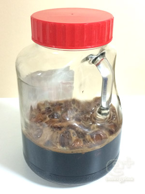 この前 アップしてから、梅シロップは糖の部分が日に日にサラサラになっていき、とてもいい感じだった。溶け残った玉糖が少しずつ減って行く以外は見た目にはあんまり変化がなく、特に写真を撮ることも忘れていた・・・が!この2〜3日、突然、ブクブクと発酵しはじめてしまった。あんまり順調なので油断して、ここ最近は瓶を振ったりするのをサボってたせいかなあ・・・後悔。とりあえず、これ以上発酵しませんように。ちなみに、ビンの底には、まだ玉糖の層がが1cmほど溶けずに残っている。> 2014/06/28 仕込み> 2014/06/30 漬け始め> 2014/07/01 漬け始めて まる1日経過> 2014/07/02 漬け始めて まる2日経過> 2014/07/03 漬け始めて まる3日経過> 2014/07/05 漬け始めて まる5日経過→ このあと、梅シロップ酵母でパン焼き にトライ・2014/08/04 やり始め〜元種仕込み・2014/08/06 元種仕込み・2014/08/07 ライ麦パンを焼く