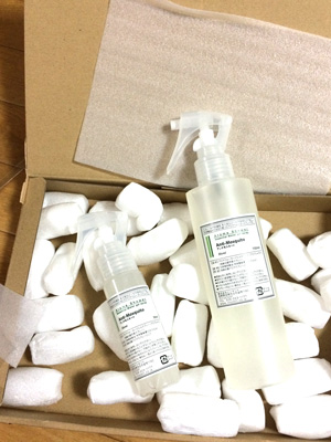 おー。届いた届いた。メール便ながらもしっかりとした箱で。これ、ずっと気になっていて2日に注文していた。天然の精油だけでできた、虫除けスプレーなのだ。これ♪「アロマの力(ちから)」シリーズ~水と天然精油だけからできた安心・安全な虫よけ対策スプレ...価格:1,458円(税込、送料込)合成薬品の虫除けを、自分に噴霧 することにどうしても抵抗があって。この夏、蚊に刺されやすい環境で作業をする機会がいつもよりも増えそうなのでぜひこの虫除けで乗り切りたい!