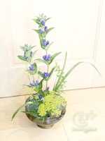 タカノハススキ、ユキヤナギの葉、リンドウ、オミナエシ。リンドウって・・・花びらが袋状になっていて、いつまで経っても開かない。こういうものなの?と思って調べたら、花が開くタイプと閉じたままのタイプがあるらしい!このリンドウは開かないタイプの方なのだな。