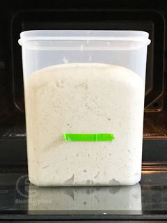--- タッパーに印を付けて一次発酵。ヘルシオ > 手動加熱 > 煮込み発酵 > 発酵 > 30℃ 2時間40分