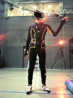 モーションアクターを務めた友人Rio.M氏。許可は得ていない。気にしない。デジタルモーションキャプチャリングスタジオ。モーションキャプチャーの実習した。某大手CG会社の方がいらしてやった。うちの学校のDMCスタジオでメビウス&兄弟とかキャシャーンとかの一部とってたとかびびった。三角木馬置いてあってびびった。