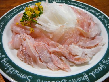 こんばんは。ご訪問ありがとうございます。今晩のご飯はいさり火セット、2日目です。(2日目とは言っても、昨日は少しお刺身にしただけですが・・・)まずはお刺身・・・これが、メチャメチャ、おいしいッ!!!フサカサゴとチカメは霜皮つくりにいたしました。アイナメはそのまま・・・(包丁捌きの未熟さは・・・どうか目をつぶってくださいまし。)真ん中あたりのがアイナメその周りにあるのがカサゴとチカメでございます。アイナメのお刺身最高!!それと今日はぽかぽかと暖かい一日でしたが、鍋にいたしました。ヨロイイタチウオとアイナメ のアラ豆腐とお野菜、白滝を煮ただけのシンプル鍋ですが、だしがしっかりきいていて、あっさりしているのですが濃厚です。ヨロイタチウオっていうお魚はほんとに見た目・・・苦手です。でも、刺身よし、煮てよし・・・こんなに美味しいなんて・・・実は本日の鍋にはアラしか入っておりません。昨日お刺身にしたのは1尾のみ・・・と、いうことは残り4尾の身は・・・・おさかなSHOPさんのお勧めの通りフライにしようと思っています。明日はそのフライ・・・トライします。結局、ヨロイイタチウオ5尾で3日間、料理できるなんて。すごいぞ~~私・・・イヤイヤ・・旬のおさかな福袋!【送料無料】いさり火セット!!