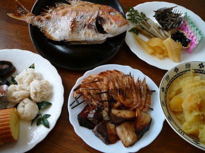 明けましておめでとうございます。訪問してくださった皆様ありがとうございます。今年もどうぞよろしくお願いいたします。さてさて、おせち料理ですが、今まで全て出来合いのものを買って済ませていましたが、今年は少しだけ手作りにチャレンジです。鯛の尾頭付きと海老の鬼ガラ焼きは、魚えーセットに入っていたものです。立派なおせちに見えます。魚かつさんのおかげです。家族の評判もまぁまぁだったので、来年もおせちつくり、頑張ってみようかと思っています。ところで、皆さんのご家庭ではどのようなお雑煮を頂くのでしょうか。うちは関東と関西の融合で、お醤油出しに丸もちと言う組み合わせです。具は大根、にんじん、しいたけ、さといも、鶏肉です。彩りにほうれん草とイクラをのせて出来上がりです。一度白味噌仕立てに丸もち(中に栗餡)、具なしと言うお雑煮を頂いたことがありますが、驚きました。本当にお雑煮って地方の違いだけでなく、各家庭によっても違いますよね。子供たちの学校でも話題になったことがあるそうですが、本当にそれぞれ違っていたそうです。同じ地域なのに、面白いですよね。今年も早速、鮮魚6日と13日に頼んでしまいました。どんなのが届くか、楽しみです。