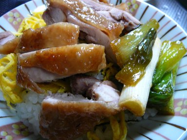 ご訪問、ありがとうございます。皆様のコメント、とても元気が出ます。ありがとうございます。しかし・・・母・・ぐうたらなオサンドン(!?)が続きます。また今日も丼にしてしまいました。今日は鳥取気分さんの鶏もも肉を使いました。鶏の鍋照り焼き丼です。鶏肉が、やわらかいッ!!それでいてしっかりしているのが不思議です。本当においしいです。このねぎはこの前お取り寄せしたお野菜セットのものですが、やわらかくて、甘いねぎです。鶏ととてもよく合います。その他にはかぼちゃとポテトのサラダ(かぼちゃ・メークイン・きゅうり・ペッパーハム)赤ピーマンとちくわの甘辛煮小松菜としいたけの味噌汁を、作りました。なるべく野菜をたっぷり、バランスよく、と心がけているつもりですがなかなか・・・毎日難しい・・・子供たちは満足したようですが、私は・・なんか魚食べないと物足りない・・明日は絶対魚にし~~よう。メダイ使って見ようかな。