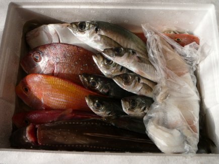 白身で淡白、とってもおいしいホーボーを大胆にも煮付けてしまいました。本当はカルパッチョとか、上品な蒸し物にしようと思って大事にコールドスリープしておいたのですが、仕事始め2日目という体の疲れ具合に負けてしまいました。えーーい、おろすの面倒だ!!丸ごと調理してしまえ!!と言うわけです。(反省・・・)でもこれが意外においしい。怪我の功名とでも言うのでしょうか。結局何して食べてもおいしいお魚はおいしいのね。と言う結論に達しました。ハイ。年末に届いた魚えーセット。なんだかんだと、1週間楽しめました。明日は【送料無料】淡路島直送!とれとれ旬魚セット【お試し版】【ヴィッセルセール0611】が届きます。ここはメールも丁寧で誠意の感じられるお店です。前回もとてもよかったので、明日が楽しみです。