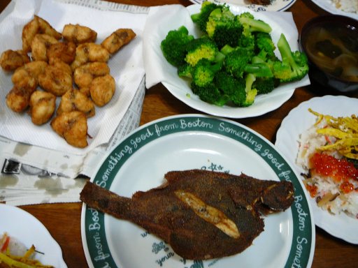 今日からお仕事が始まりました。年末にやったことはすっかり忘れ去っていて、仕事の勘(!?)が働きません。どっと疲れて帰宅。でもこんなときこそ気を取り直して、今晩のご飯の支度です。お魚はあったのですが、野菜類が無い・・・と言うことで、品数をあまり作らなくても良いものにしました。カレイのから揚げ白さばフグのから揚げブロッコリー(ゆでただけ)きのことわかめの味噌汁混ぜすし(混ぜるだけ)あと1日頑張ればまた3連休です。今日からお仕事の皆さん、一緒にがんばりまっしょ