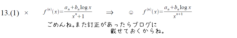 13番のn次導関数の分母が「xのn乗+1」ではなく「xのn+1乗」です。いままでの訂正はこちら