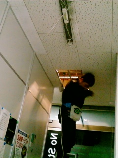 電気工事で蛍光灯を新たに12本増やしてもらった。写真に写ってるのは筑波大学卒のIT会社の社長。仲良くしてもらっていていっしょに遊んだりする。なぜか電気工事の資格を持っていらっしゃるのだ!!深夜にしか作業ができないので23時すぎからお願いしていた。すごく明るくなりました。