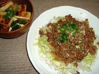 今日のばんごはん 牛 丼 昨夜作っておいた牛丼です。お漬物を添えて・・・ 少し濃い目の味にしたので食べるときに卵を落として 一味唐辛子をひとふり おつゆ多めにしていただきました。 今日のおやつ ココナッツサブレ これ好き サクサクしておいしいから