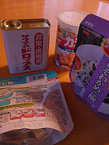 普段の休日だと、10時前には買い物に出るのだけれど、今日は月曜日、生協の配達が10時に来るので、買い物はそのあとに。そうなると、意外と10時までの時間が長くて。パパは洗車を始めました私は一通りの家事を終えた後に、気になっていたみかんの木の剪定を。高いところは、洗車を終えたパパに手伝ってもらって。自由気ままに伸び放題だったので、見た目だいぶすっきりしました午後、洗車道具の片付けから、玄関まわりの片付けに移行したパパ。非常持ち出し袋を開けました。しばらく、持ち出し袋のチェックを怠っていたので、ひょっとしたら、と思ったら、案の定。食料がほぼほぼ賞味期限切れ今月いっぱいのものもあって、それらを省くと、ドロップと羊羹、カップラーメンに、水。それだけしか残りませんでした。今、何かあったら、やばい早急に買い足さねば。そして、早急に、これらを消費しなくては(笑)。白米は、夕飯で消費しました。熱湯入れて15分待つ、というものでしたが、ちょっとかたいところが残ってしまいました。でも、非常時に、これだけあったかくておいしいお米が食べられるのは、嬉しいかも。うん。非常食料の試食、必要ですね