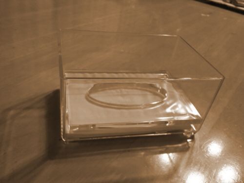 息子、どうやら本格的に花粉症になったようです。くしゃみ連発、鼻かむ回数増加、目真っ赤。ただでさえ、春休み中で、バイト以外はほぼ家にいる生活なのに、ちょっとした買い物なども、嫌がるように。私も、だいぶ年季の入った花粉症(というか慢性鼻炎)なので、ティッシュの減り方が、ハンパなし。息子が、やたらポケットティッシュをもらってくるので、百均で、ポケットティッシュ用のケース買ってきました。 それさえ、あっという間に減っていって、夕方には、補充するハメに。透明なアクリルの、味も素っ気もないケース。高校時代の友人なら、これに素敵な布貼って、おしゃれな小物に変身させちゃうんだろうなぁ、と思いつつ、自分では何もできないので、そのまま使います。なにかいじろうものなら、見栄え悪くなるの確実だから