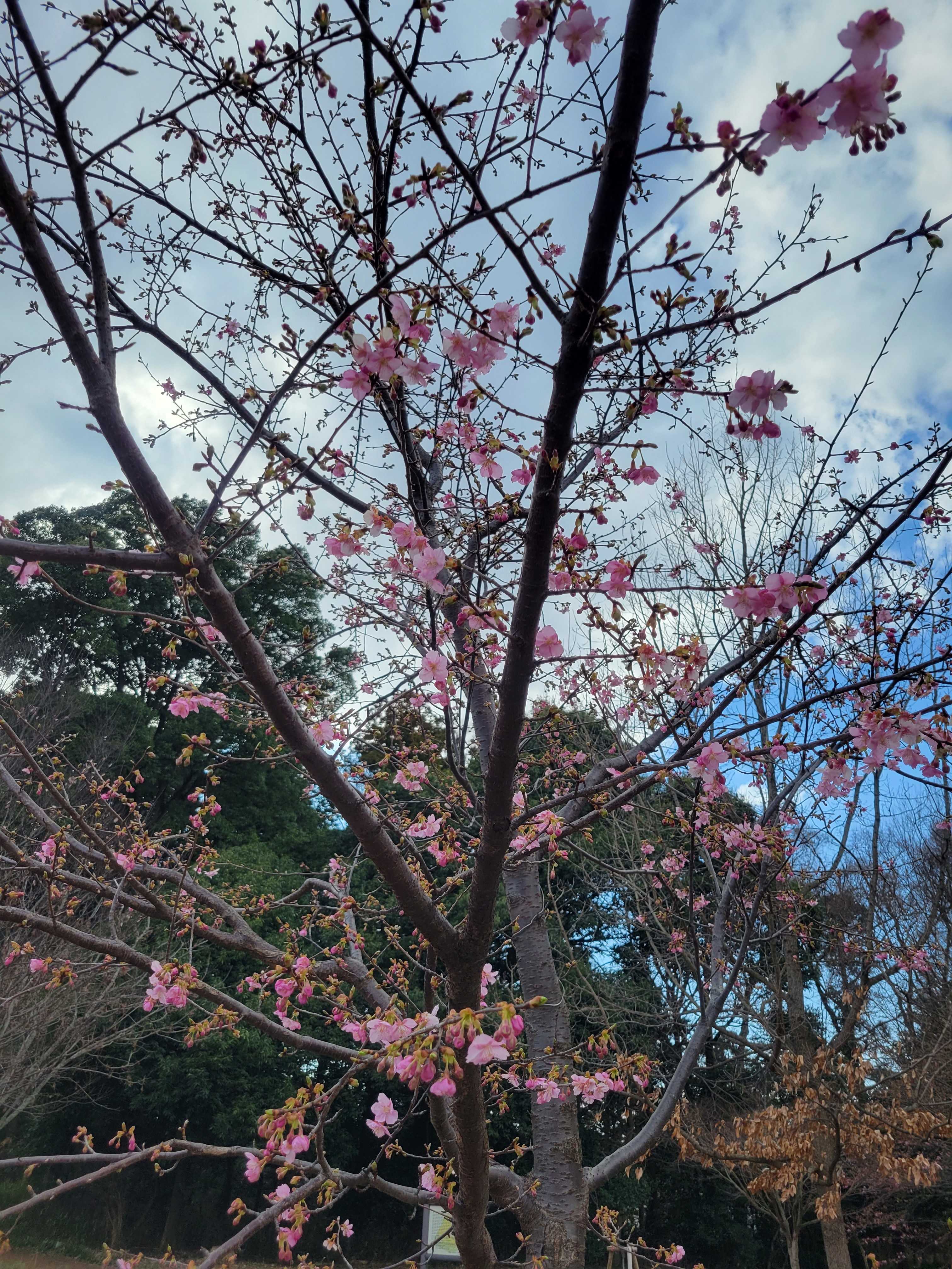 最寄り駅。反対側は、前からきちんと整備されていたのだけれど、うちの方の側は、なーんにもなくて。それが、いつ完成するのかわからないけど、造成工事の真っ最中。主人の在宅勤務があったりして、数日ぶりに駅に行ったりすると、道路や風景が変わっていたりして、びっくりする。来月ランチの予定があり、当日に困ることのないよう、いつもとめているコインパーキングに変わりはないか、ウォーキングがてら見に行ってみた。…閉鎖されてる…。駅からちょっと離れてるけど、そこへ入る道が多少狭かったりしたけど、満車になることも少なかったし、安かったし、使い勝手のいいコインパーキングだったのに。だんだん整備されてきているから、駅に近い方に、コインパーキングは、あることはある。ただ、やはりお高め。そして、雨なんか降った日にゃ、即、満車。またいいところ探さなきゃ。がっくりしてしまったので、帰り道に城跡へ寄り、先日よりは少し咲いてきた河津桜を一枚。