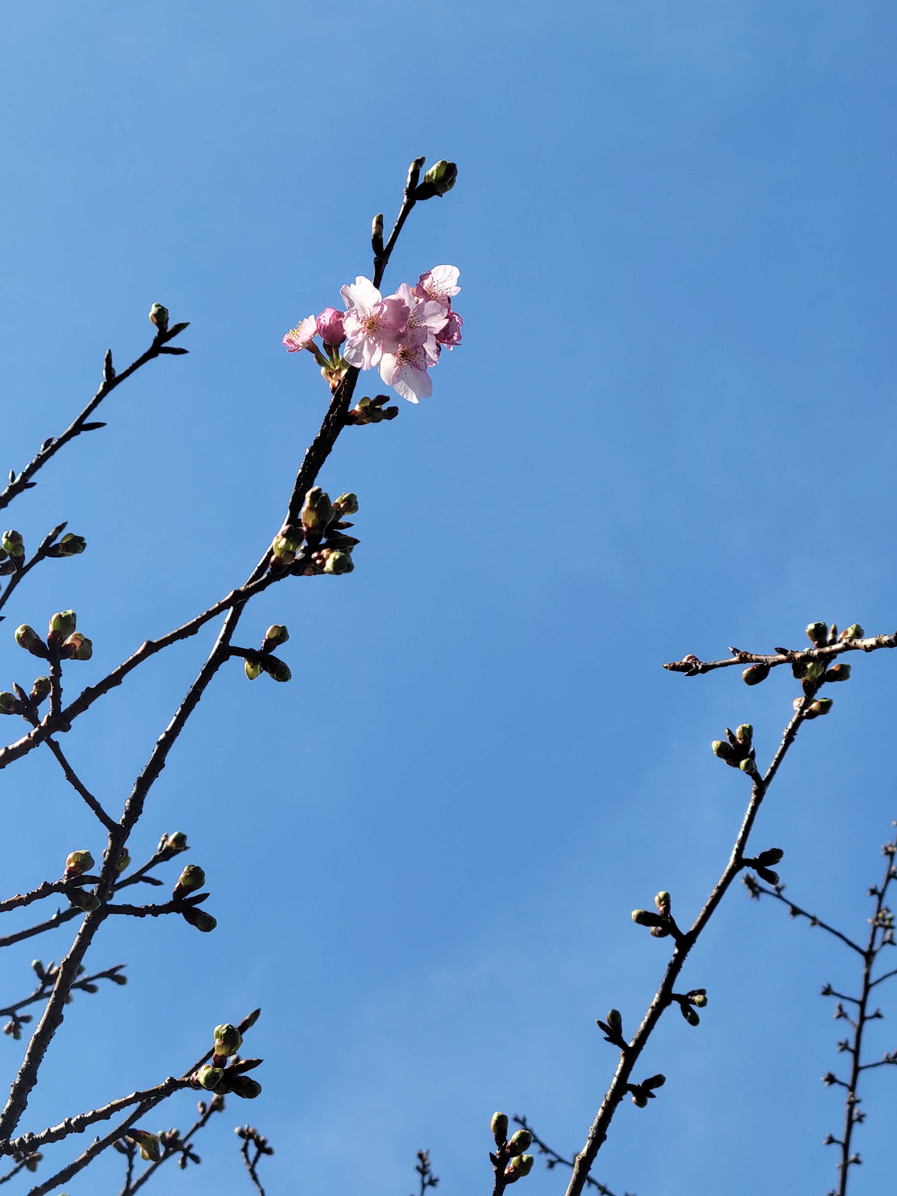 わかってはいたけど、朝からネガティブモード。ウォーキングに出たりして、なるべく他のことに目を向けようとしたけれど、結局、頭のどこかで、胸の中で、悔しさ、残念さ、いろんな気持ちが渦巻く一日。夜になったら、SNSから拍車をかけられ、あやうく決壊しそうに。早々に布団に入った。もう一ヶ月もこんな状態。毎日、なにかいいこと見つけて過ごそう、とは思っているものの、ふとした時に、心の隅のもやもやを自覚してしまう。自分のことながら、参った…。今日、一瞬だけホッとしたのは、お隣中学校区にある城跡の、河津桜。まだまだ満開には時間がかかりそうだけれど、数輪だけでも、少しほっこりできた。