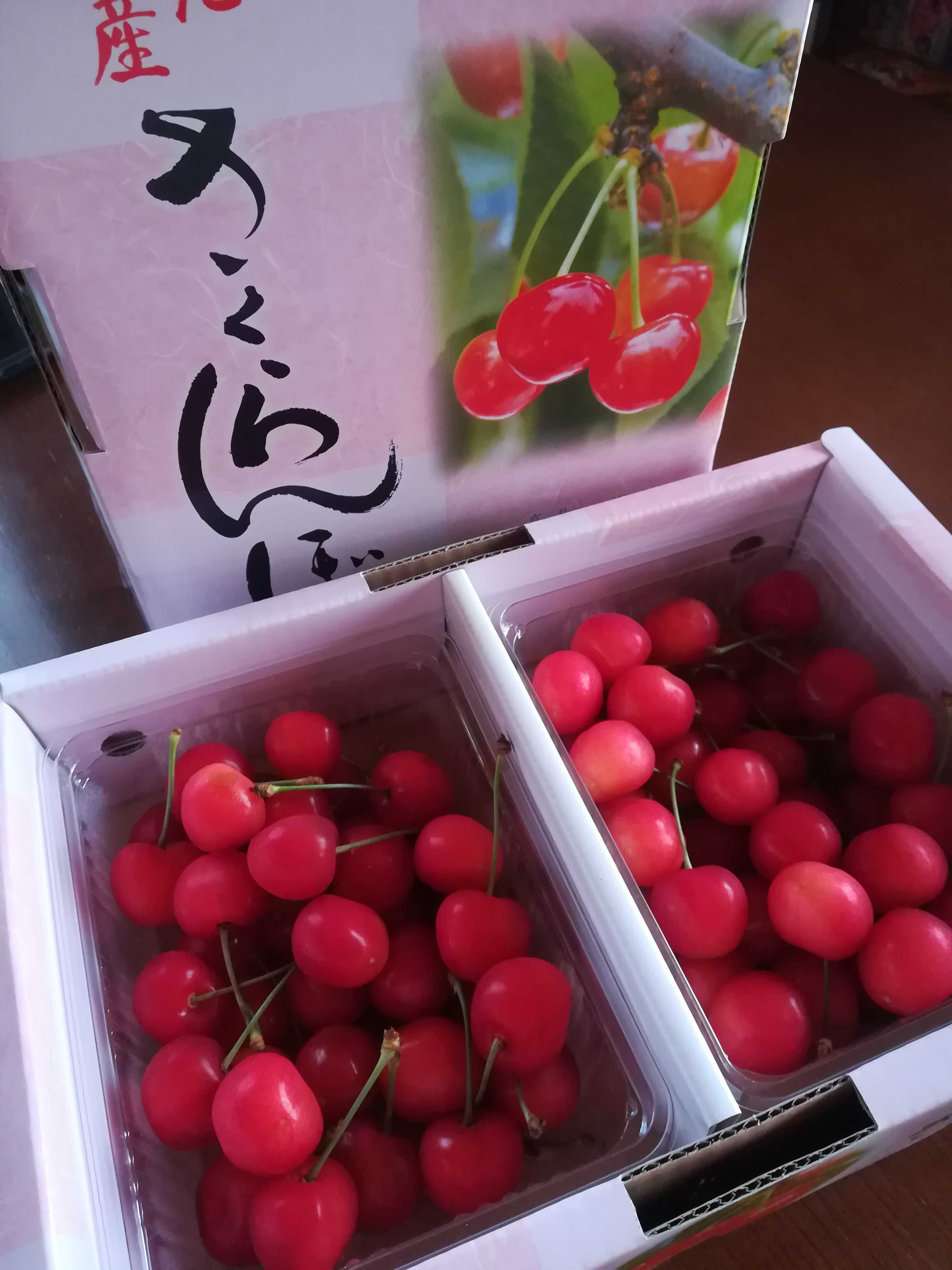 嬉しいお届けもの。お義父さんのご実家から。まさに、赤い宝石。きれいだし、甘くて美味しい。血圧下げるためのカリウム含有量も多いんだそうだけれど、自分で買って毎日食べるのは、おサイフ的になかなか。たまにさくらんぼ、普段はバナナ、かな。