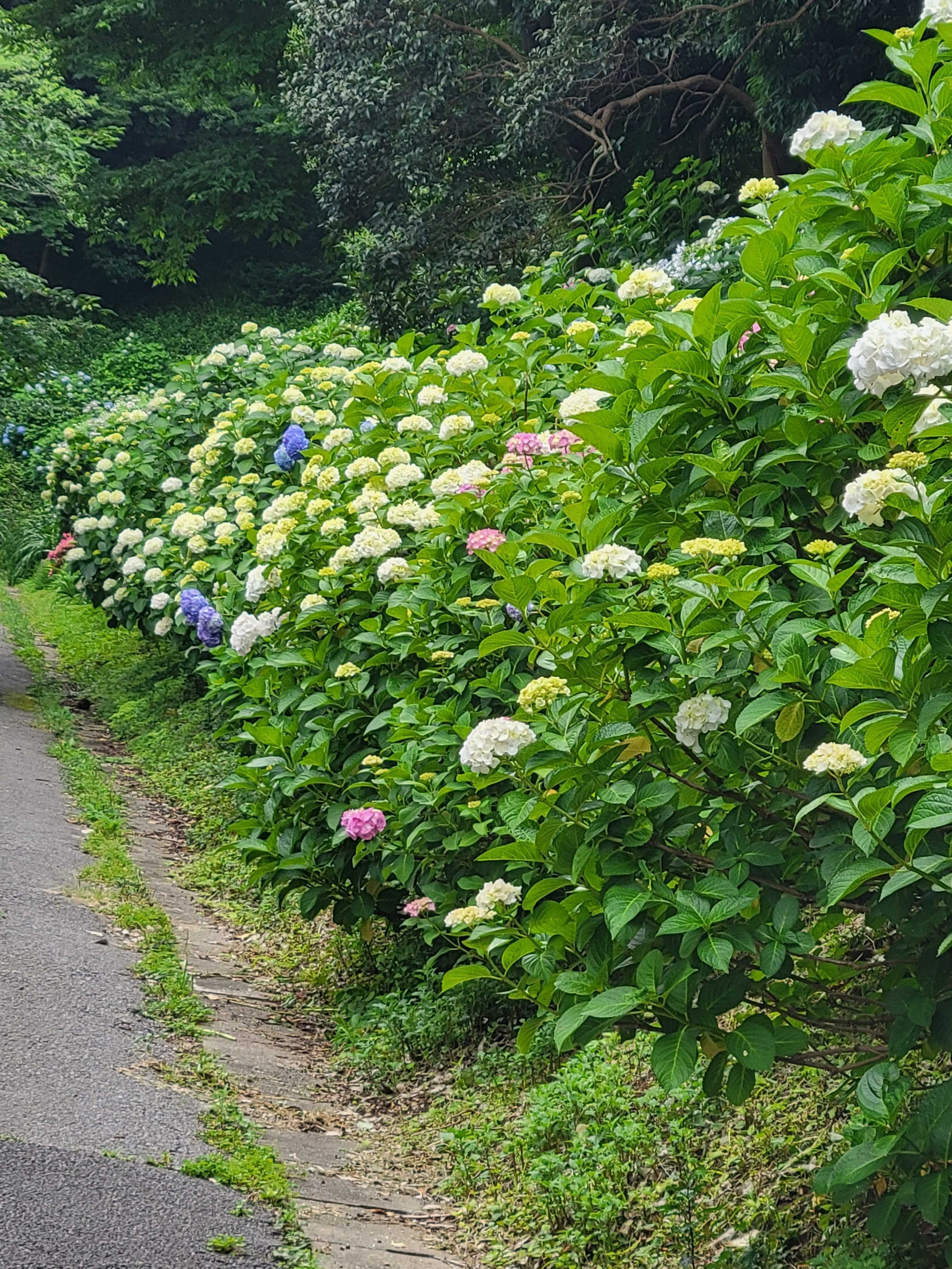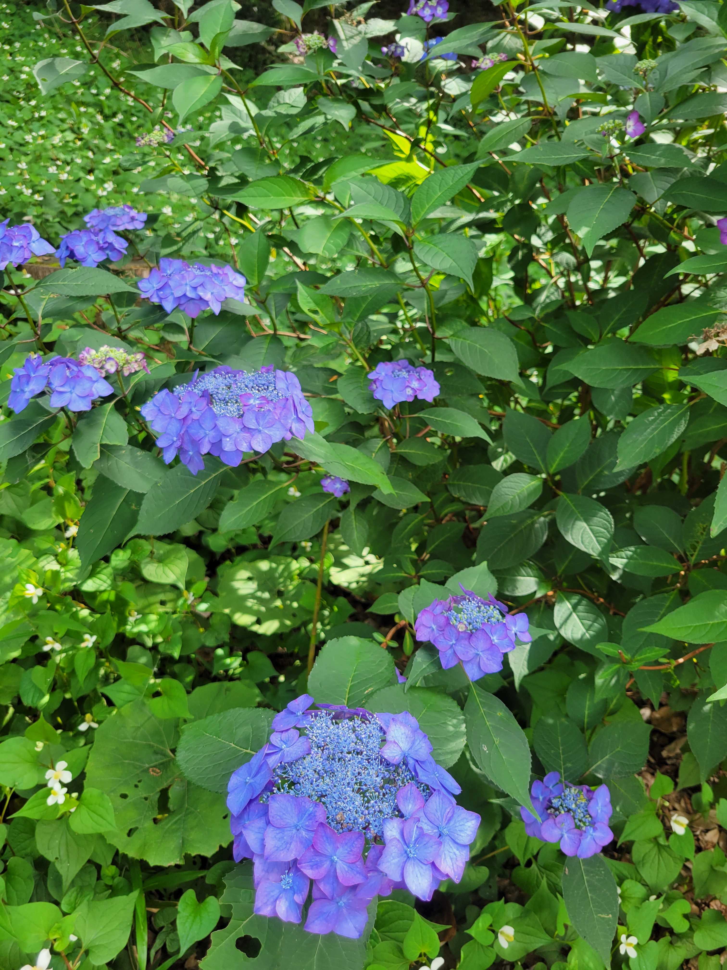 台風一過で気温が上がり、しかも強風が残っていたけれど、昨日一昨日、外に出られなかった分、今日はどうしても!と、歩きに出た。途中、森の中を通るルートを選び、しっかり涼と水分をとりながら、2日歩かなかったブランクと、今日の暑さも考えて、5km弱を1時間ほどで。森を抜けたところの、小学校の脇の紫陽花。紫陽花って、もっともっと満開にならないと、葉っぱの存在感が大きすぎて、全体的に撮ると、写真映えしないような。…センスの問題か?