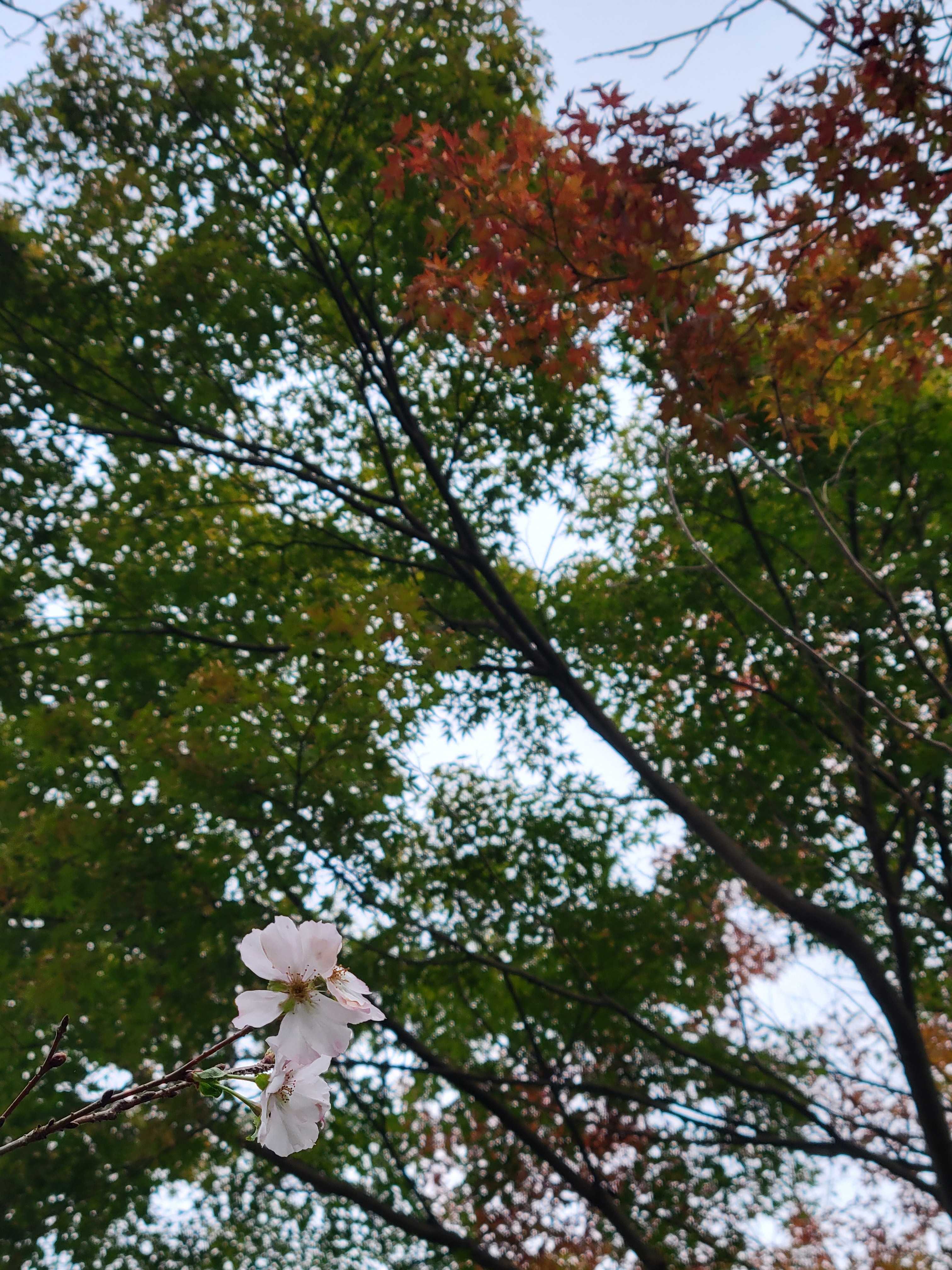 今年も始まった、3市周遊スタンプラリー。気温も下がってきて、派手なお花があんまりない季節。ウォーキングの目的にはもってこい。昨日は、普段なら車で行く公園に。6.7km。その公園と、公園内にあるカフェ、スタンプ2つGET。今日はいつもの公園に。6.2km。コスモスは本当に生育が悪く、とうとう「咲き揃わないまま、刈り取りになることも」と公式サイトで発表されるまでに。そんな中、紅葉と桜(アーコレード)に、心癒される。風車前と、隣接する弁天さま、スタンプ2つGET。スタンプラリーは1月末まで。のんびり楽しもう。