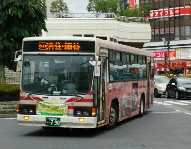 【ナンバー】 宇都宮200か790 【所属】 細谷車庫(駒生営業所傘下) 【車種】 いすゞ キュービック 【型式】 U-LV870L 【車体】 アイ・ケー・コーチ(いすゞバス製造) 【年式】平成6年(推定) 平成18年頃、大阪市交通局より移籍。 このクルマは前後折戸の特殊ワンステップバスで、大阪市交通局の試作車両。 2台製造され、もう1台は関東鉄道(関鉄バス)つくば北営業所(茨城県つくば市)に在籍している。 当初は白に藤波の低床車カラーで導入されたが、車椅子スロープは備え付けられていないためいろいろ問題が出たのか、のちに広告フルラッピングが施されたと同時に前面のみクリーム色と赤三本線の旧カラーに変更。 しかし、フルラッピングの下は低床カラーのままで、ちぐはぐ状態。 特殊な構造が災いしているのか座席数が少なく、乗客からの評判もあまりよくない様子。 車内は特に改造などは受けておらず、大阪市交通局時代そのままを保っている。 ただし、大阪市交通局標準の後輪の巻き込み防止板は、関東自動車に移籍後整備時に撤去されている。 ※後輪の巻き込み防止板は、近畿圏で多く採用されていて、他には奈良交通・近鉄バス・阪急バスなどで見ることができる。 現在も現役で稼働しているが、新車のノンステップバスに押され、稼働回数が少なくなりつつある。 ※アイ・ケー・コーチ(いすゞバス製造)は、現在のジェイ・バス宇都宮事業所で、このクルマも宇都宮で製造されたもの。