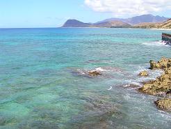 ウエストショアーでも今日はビーチ エレクトリックビーチからカヘポイントというポイントへ。しかし、波打ち際が凄く荒れててフィンを履く間もなくすぐに砂浜の方に押し戻される。器材に砂が入らぬよう、頑張る。 これがかなりの体力消耗、潜る前から疲れる~!!潜ってほどなくすると荒れた海を忘れる程の穏やかさだが、潮の流れはある。そんな状態とビーチという事もあってボートの時より透明度は今一。 それでも海の中を楽しみ、難関の砂浜付近まで戻ったら激しい波にもまれ一回転。「わっ、一回転!」と一回転にビックリ。面白~い海の中が泡だらけでどっちが上か下かわかんなかった。パニクる前に笑けたお陰かとっても冷静。気付いたら一番に浜辺に上がってた。しかし岩がなくってよかった~!! 陸から見る景色は綺麗なんですよ~。