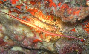 次のポイント:マカハカバーン、リーフダイビングのポイントで地形のおもしろさはオアフ島一らしい。ここでもハワイの固有種レッドストライプパイプフィッシュ(ヨウジウオ)を発見。普通のヨウジウオとは違い、赤いラインが特徴です。エビも色々います。 左から アカスジモエビ、オトヒメエビ、フリソデエビバラみたいに見えるのはウミウシの卵この卵を産んだのは君かね??可愛いペンシルイールも発見!本当にエンピツ程の大きさですが、これで大人サイズ。忘れてはならないのが海ガメ。ハワイでは保護されてるのを知ってるのか否か、どんなに近づこうが知らん振りでマイペース お食事中のカメをすっごい至近距離で激写 目がとってもキュートと、ここのポイントでは沢山の種類の魚達と出会った。