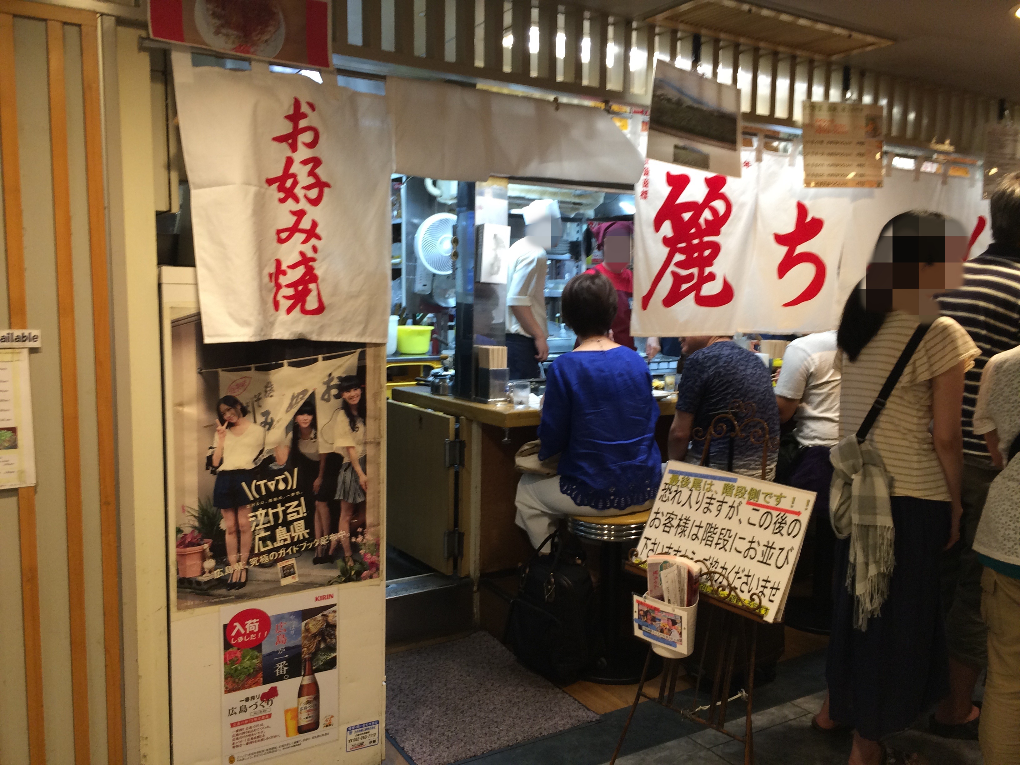 久々にまとまったお休みをいただき、広島へ。山の日を避けて、というか偶然なんだけど、祝日でなかったお陰で新幹線も座れてラッキー!!(指定席は満席でしたが・・・)広島駅到着後、昭和32年創業の広島焼きの老舗「麗ちゃん」へ。駅ビル内の為、長蛇の列。店舗前から通路を挟んで階段に並んでいる状態。だが、回転が速いので、そんなに待たずに座れる。階段に並んでいる間にメニューを渡され、店舗前に並んだ状態で注文するので、座ったらすぐに出てくる状態。段取りの良さが素晴らしい。イラチな関西人からしたらGood!メニューは全体ランキング2位の広島のお好み焼きの定番を注文。生地は弾力がありすぎてやや固めかな。キャベツは時々臭い所があるが、ここのは臭くなくてGood!ソースはカープソースらしいです。おいしゅうございました。