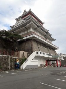 真鶴半島を充分堪能したがまだ時間が2時にもなってないので帰る道中に寄りやすい【熱海城】に行ってきました。 熱海城は歴史的建造物ではありません。戦国時代の昔、関東・東海地方に威をふるった小田原北条氏歴代の名将たちも水軍の根拠地として築城を希望しながら果たし得なかったそうです。築城に最適地である海抜120m余、名勝地錦ヶ浦を脚下に控えた天与の要塞地に昭和34年に築城されました。日本のコンクリート像作家:浅野 祥雲の作品、12神将のうち11神将と観音?がありました。1体はどこへ行ったんでしょうか・・・。画像は一部掲載。 熱海城にそびえる「金の鯱鉾」も浅野氏の作品で、日本一の大きさです。 雄:2m96cm、雌:2m90cm、重量:約750kgこの鯱鉾は入口を入ってすぐにある記念撮影用のものです。実は熱海城は、あまり期待していなかったが、かなり充実した展示物。1F・武家文化資料館、鎧・日本刀・火縄銃、他 刀の重さを体験できるコーナーがありました。 総重量:937g 以外に軽く持てました。が、ず~っとだとどうなのでしょうか・・・。6F・展望台より太平洋を望む。 5F・江戸体験コーナー は実際に重さや担いだり、衣装に着替えて殿様になりきれる。 肥桶を担いでみたが、担ぐのも難しいが背が高くないと持ち上げられない。 160cm無い私の身長ではひきづった状態。昔の人は身長低いはずなのだが、現代人の男性に併せて造ったものかもしれない。4F・江戸の判じ絵クイズ は閃きが必要で頭の柔軟体操になります。 実はこれ、全問回答すると1Fでオリジナル製品のプレゼントが貰える。なので、参加されてる方は皆さん必死。私達はもちろん、全問正解です。どうしても1問分からないと他の皆さんが頭をひねっていた問題はこれ。 これを読んでいる皆さんは解るかな??このコーナーは私好み。かなり楽しみました。3F・浮世絵春画展 春画の展示会場だけは18歳未満入場禁止なうえ、撮影禁止となっています。2F・日本城郭資料展、マッチ棒城郭模型 よくみたらマッチ棒で出来てて、ビックリです。 それぞれマッチ棒3万本以上使用されています。気が遠くなりそう。地下1F・無料遊戯施設ゲーム機 全機種無料久々に色んなゲームをしました。シューティングゲームやレーサーゲームが多いが小さな子供も遊べる砂遊びゲームやボール遊びなどもあり親子で楽しめる。そして、ここのゲームを沢山すればするほど元が取れる。大学生のお兄ちゃんが年の離れた小学生の弟をつれて何度か来ているようで、土日祝はいっぱいらしく今日は空いてて良かったな。と話ていた。久々のゲーム、かなり体力使いました。帰りはぐったり。(笑)ゲーム好きにはたまらないのかもしれない。こんなに充実しているとは思わなかった熱海城。友人が行こうと言わなければ一生行ってなかったかもっ何事も行ってみなければ、やってみなければ分からないですね。先入観はダメと学習しました。