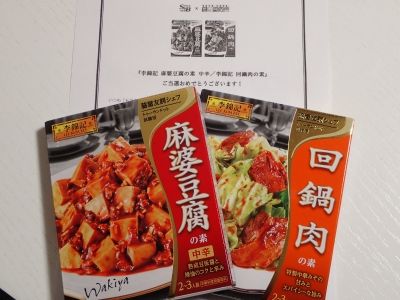いつも利用している「もらえる・ためせる」通称【モラタメ.net】モラう に応募して久々に当たった。(^^ 脇屋友詞シェフタイアップ「李錦記合わせ調味料」シリーズの回鍋肉と麻婆豆腐の素。 まずは「回鍋肉」から。 作り方に「おいしいコツ!」が記載されていて、なるほどね~と勉強になる。 記載されている作り方通りに作りました。 キャベツたっぷりでヘルシー。 肉と野菜、別々に炒めるのもポイントですね。回鍋肉でなくっても他の野菜で野菜炒めとしてもいいかも!!次に「麻婆豆腐 中辛」 「おいしいコツ!」はこれ。このひと手間がプロの味と素人の味の差ですね。 水を使わず、豆腐からでる水分でほど良い感じに出来上がりました。 白ネギの代わりに青ネギたっぷり入れました。この味は素人では出せない味。コクのある中華大豆みそ がポイントなのかもしれない。普段、あまりこういう簡易なレトルト系は買わない派なので今回とても勉強になりました。 両方ともコクがあって美味しかったです。