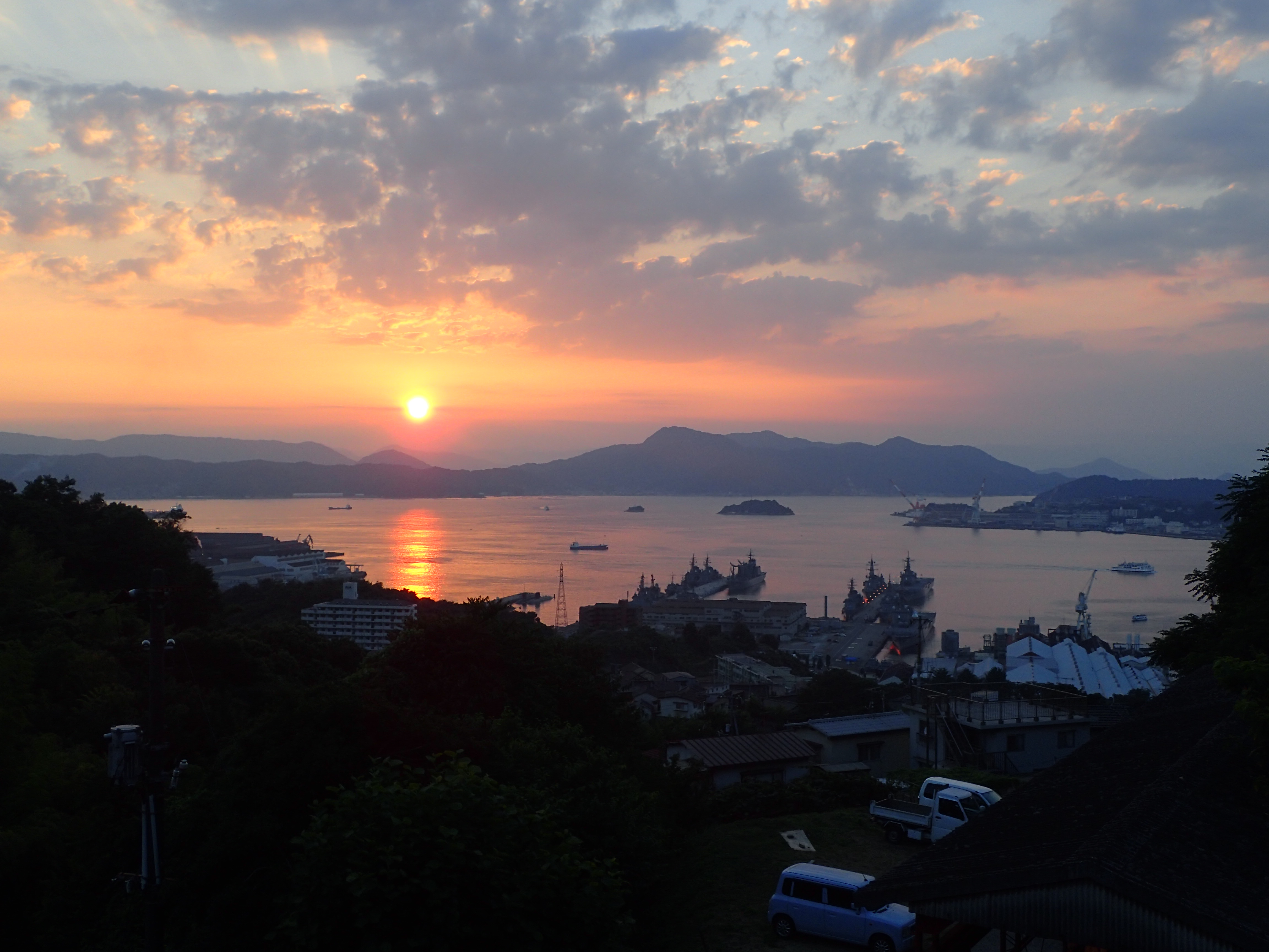 軍港の町、呉の夕陽 を眺めつつ、堪能しました。