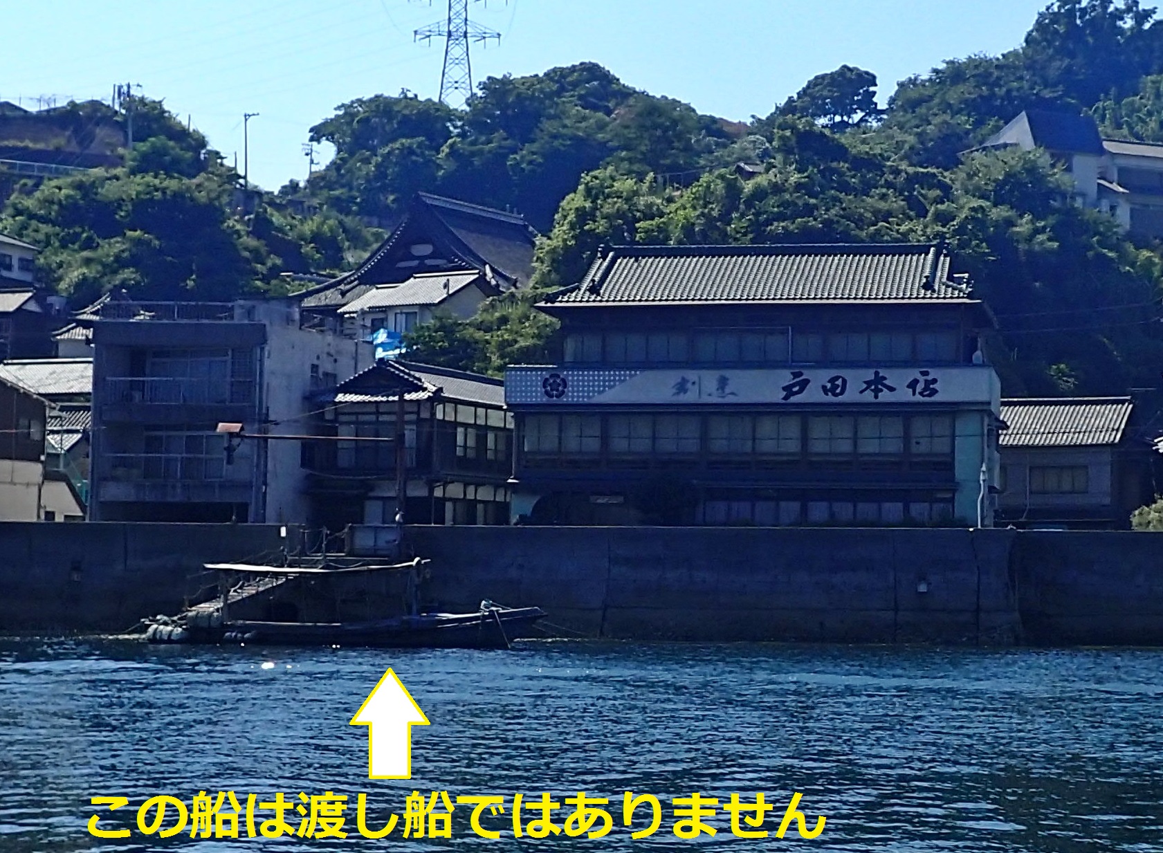 旅館が保有する水槽船だったみたいで、斜め向かい方面から本当の渡し船(上記写真)が