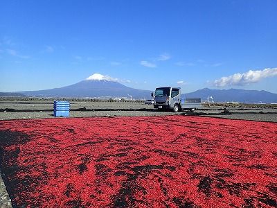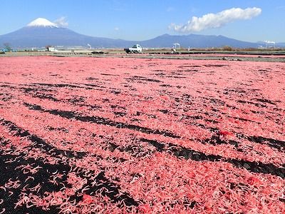 ただ桜えびが干されているだけなのに、奥に富士山があるだけで
